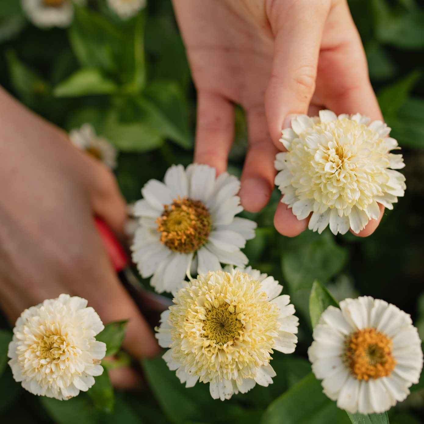 Cynia Zinderella White to cynia o mniejszych, ale za to pełnych kwiatach, w kolorze złamanej bieli z bordowym środkiem. Przepięknie komponuje się w bukietach.