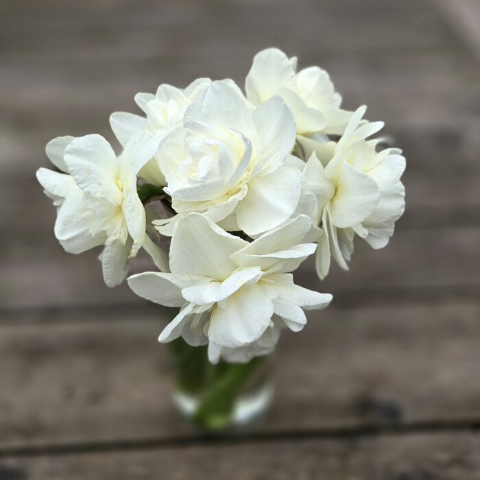 Narcyz Obdam wygląda jakby był zrobiony z papieru. Ma cudne, jakby pozgniatane płatki w biało waniliowym kolorze, umieszczone gęsto i niesymetrycznie w koronie. Duże, niezwykle dekoracyjne kwiaty  na sztywnych, wysokich na ok. 40 cm, łodygach zdobią rabatę niczym pierzasta, śmietankowa chmurka.
