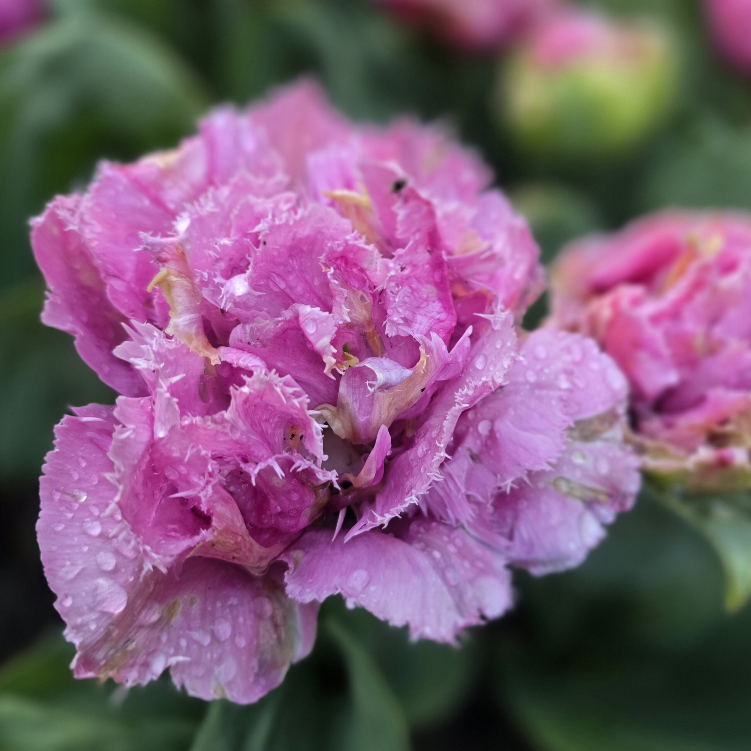 Tulipan Cairns to niesamowite połączenie tulipana pełnego ze strzępiastym. Jego pełne, okrągłe kwiaty w pastelowo różowym kolorze z białym, fryzowanym obrzeżem płatków to istne dzieło sztuki. Wygląda niczym miniaturowa peonia czy to w pąku czy też w pełnym rozkwicie. Dzięki niewysokim łodygom świetnie sprawdzi się w donicach i na froncie rabaty.